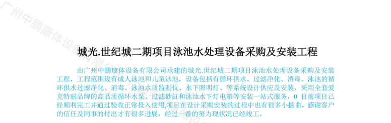 城光.世紀(jì)城二期項(xiàng)目泳池水處理設(shè)備采購及安裝工程